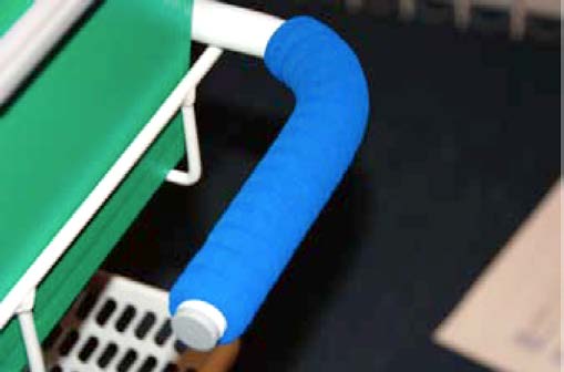 - Når moppen skal af, bruges fødderne igen til at løsne snipperne. Herefter vendes fremføreren, og moppen tages med velcroen i midten af fremføreren. Fremføreren løftes nu op og moppen tages af.