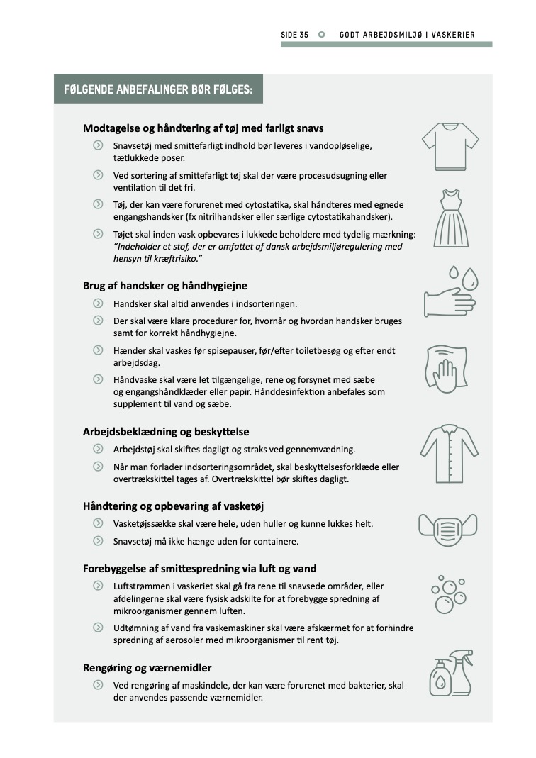 - Ved sortering af smittefarligt tøj skal der være procesudsugning eller ventilation til det fri.