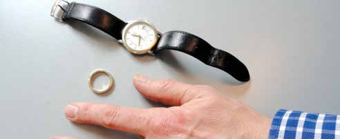 Ringe, ure og andre smykker bør ikke bæres under rengøringsarbejdet. Der kan f.eks. gemme sig bakterier under en ring og andre smykker, så derfor skal de ikke anvendes under handskerne.