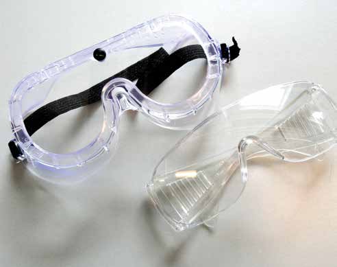 Hvis der er risiko for at få stænk eller sprøjt fra rengøringsmidler i øjnene, skal der bruges beskyttelsesbriller eller ansigtsskærm. Det kan f.eks. være ved skumudlægning og efterfølgende spuling med vand.